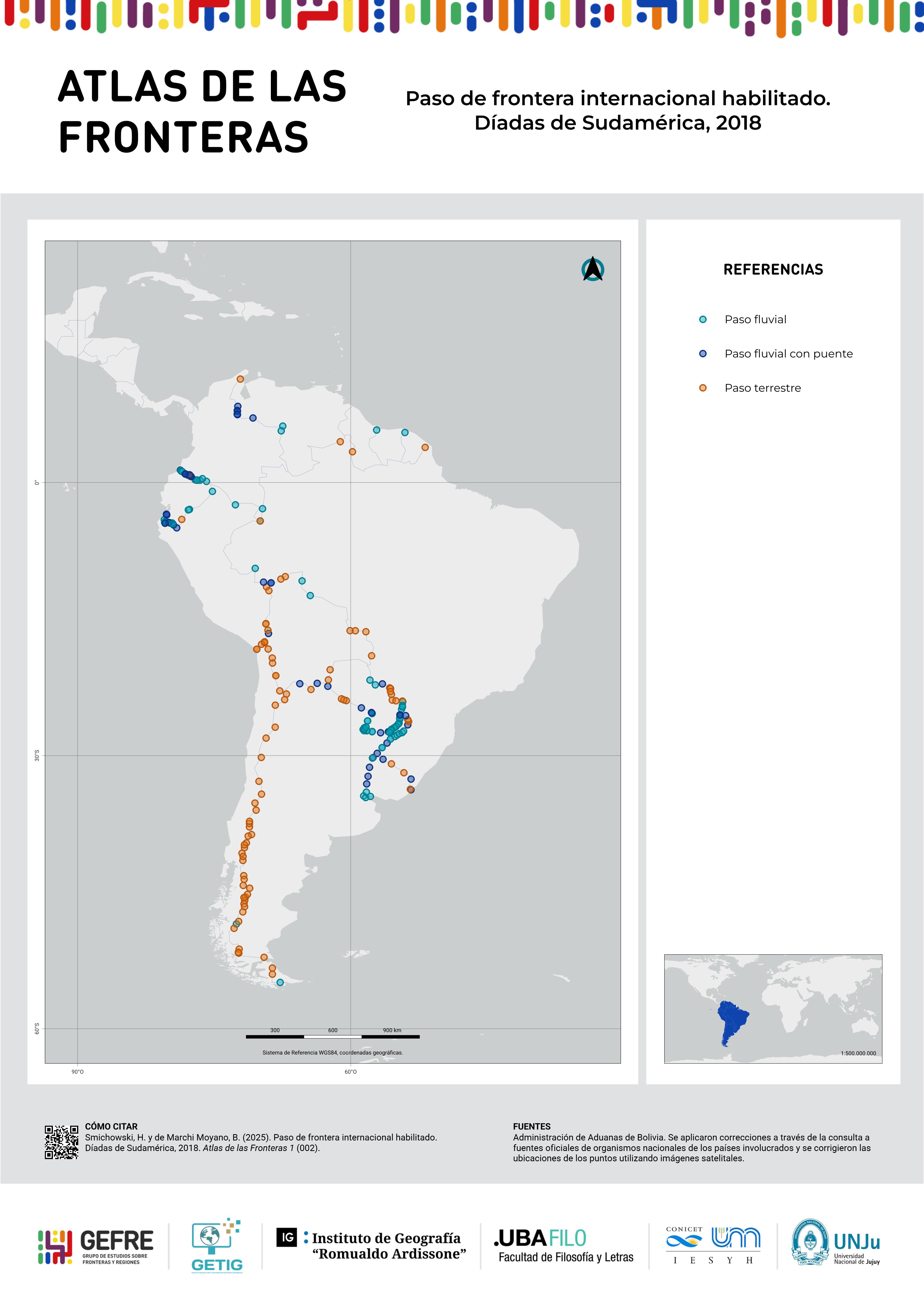 Hoja de atlas 002. Paso de frontera internacional habilitado. Díadas de Sudamérica, 2018