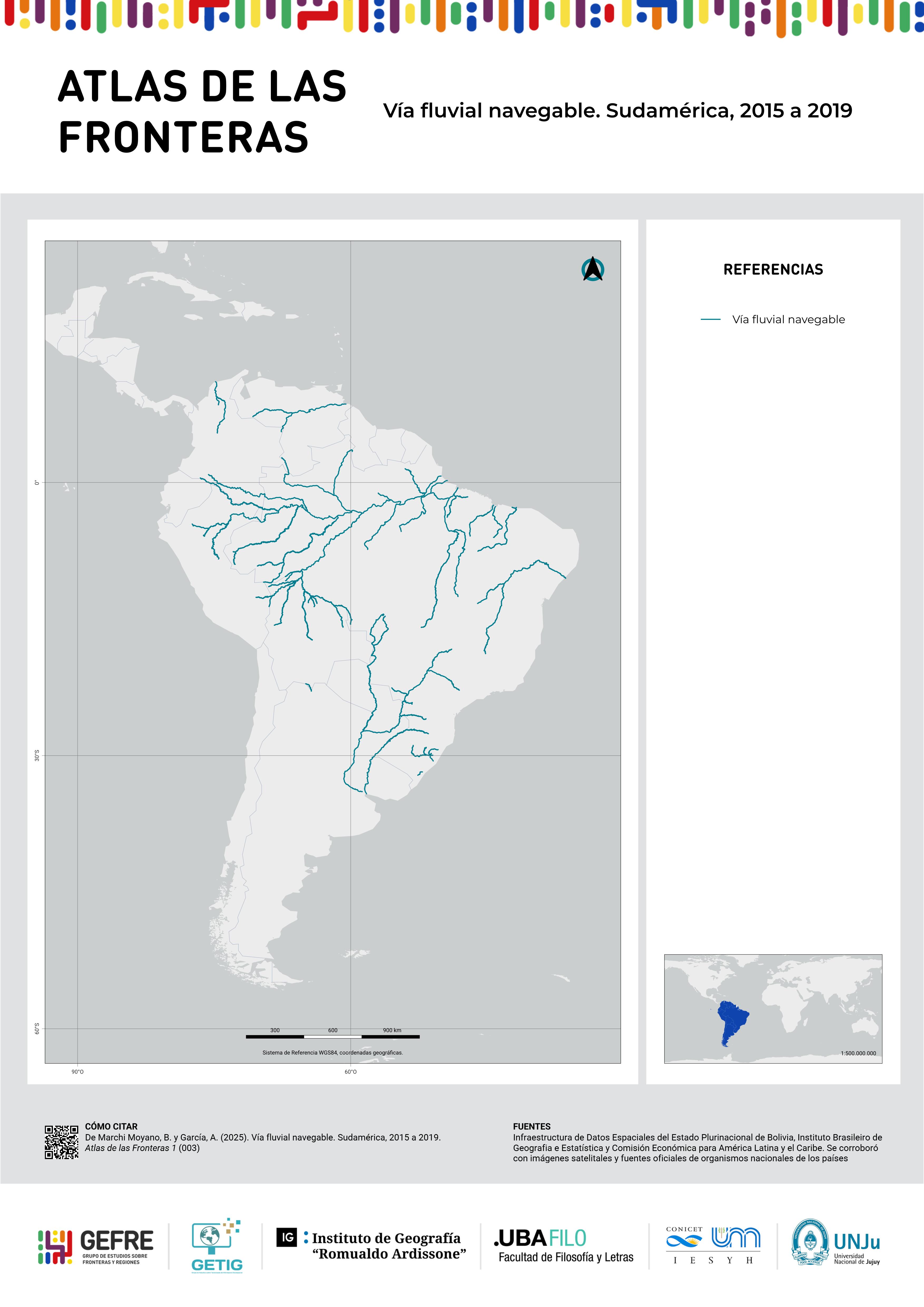 Hoja de atlas 003. Vía fluvial navegable. Sudamérica, 2015 a 2019
